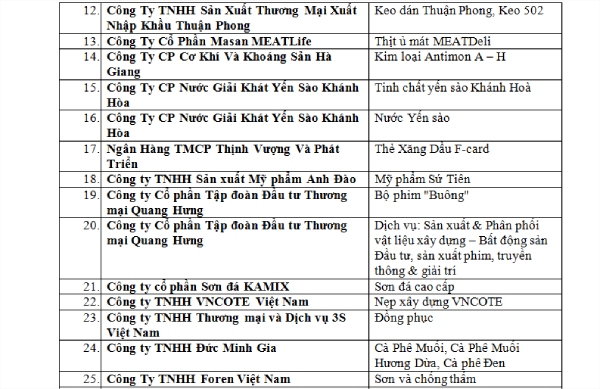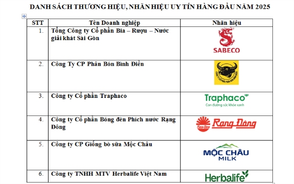 Danh sách Nhãn hiệu nổi tiếng - Nhãn hiệu cạnh tranh Việt Nam - Doanh nghiệp tiên phong đổi mới sáng tạo năm 2025
